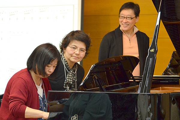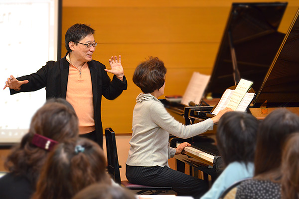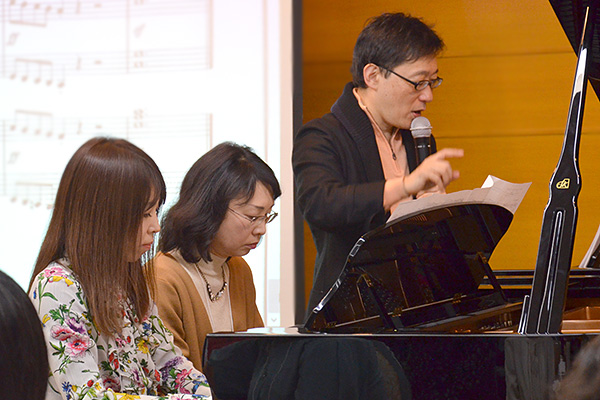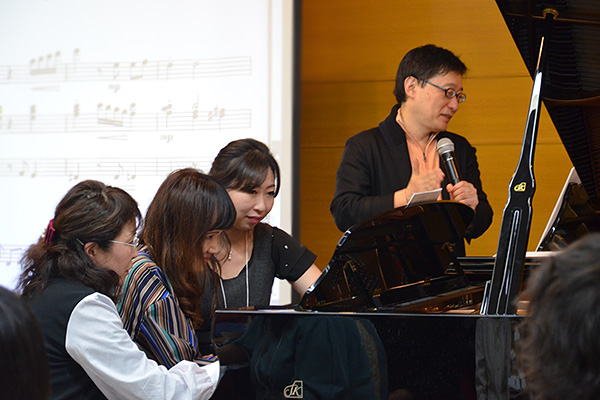 その後、受講者のアレンジアドバイス、後半は「第1回クリスタル☆Pianoコンクール」課題曲の演奏アドバイス(主に小原先生のアレンジ曲)と続き、短時間ながら要点を押さえた指摘に、皆さん大いに納得されていました。