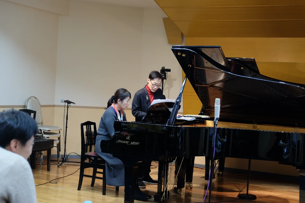 - 「連弾曲をアレンジすること」に特化した濃密なセミナーで、4時間がアッという間でした。受講生の皆様の演奏も素晴らしく、生演奏の良さを実感できる楽しくためになるワークショップでした。