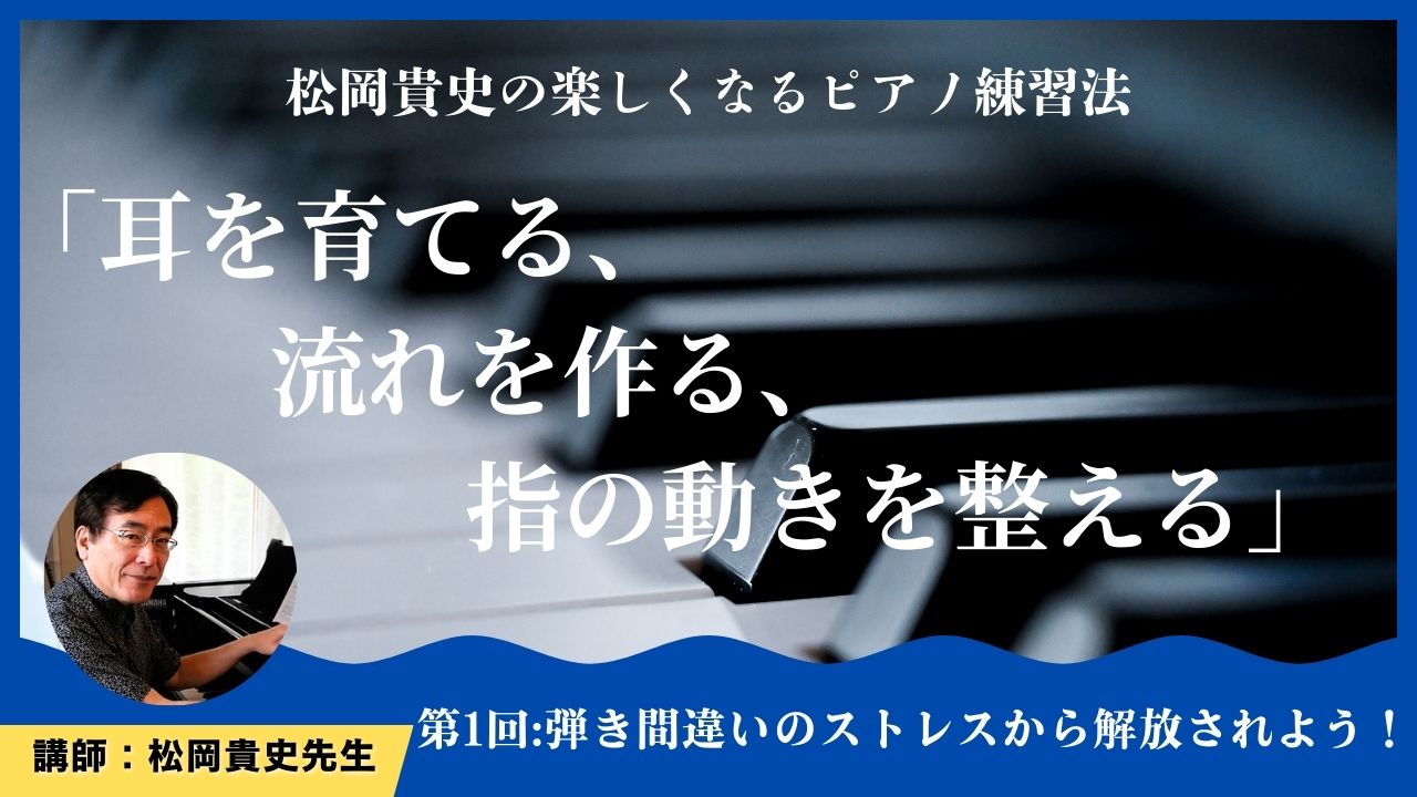 作曲家・松岡貴史先生によるeラーニング講座『楽しくなるピアノ練習法』がいよいよスタート! 本動画はその「 第1回:弾き間違いのストレスから解放されよう! 」です。