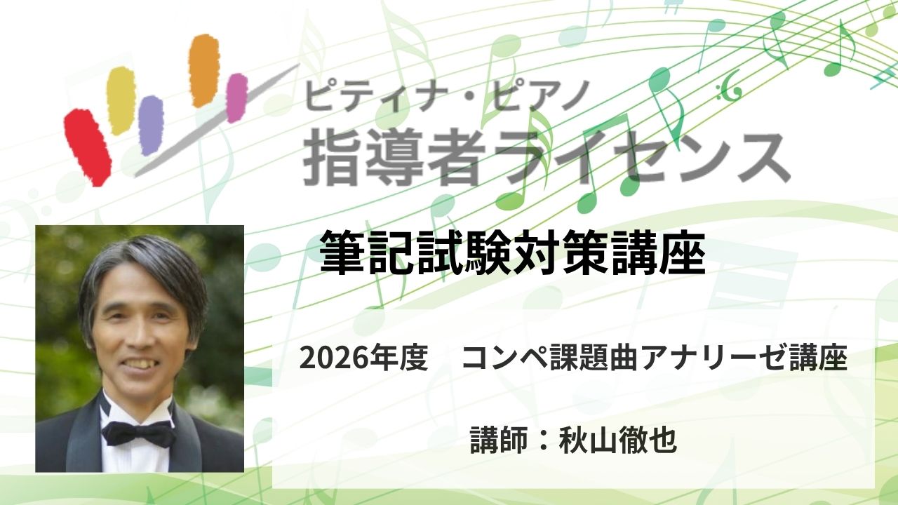 試験に向けて、どのような勉強をしていくべきか、はもちろん、楽譜の本質的な読み方も追求して、コンペティション指導にも直接役立つように解説いたします。講座×コンペティション指導×筆記試験およびWriting で学習効果が倍増!